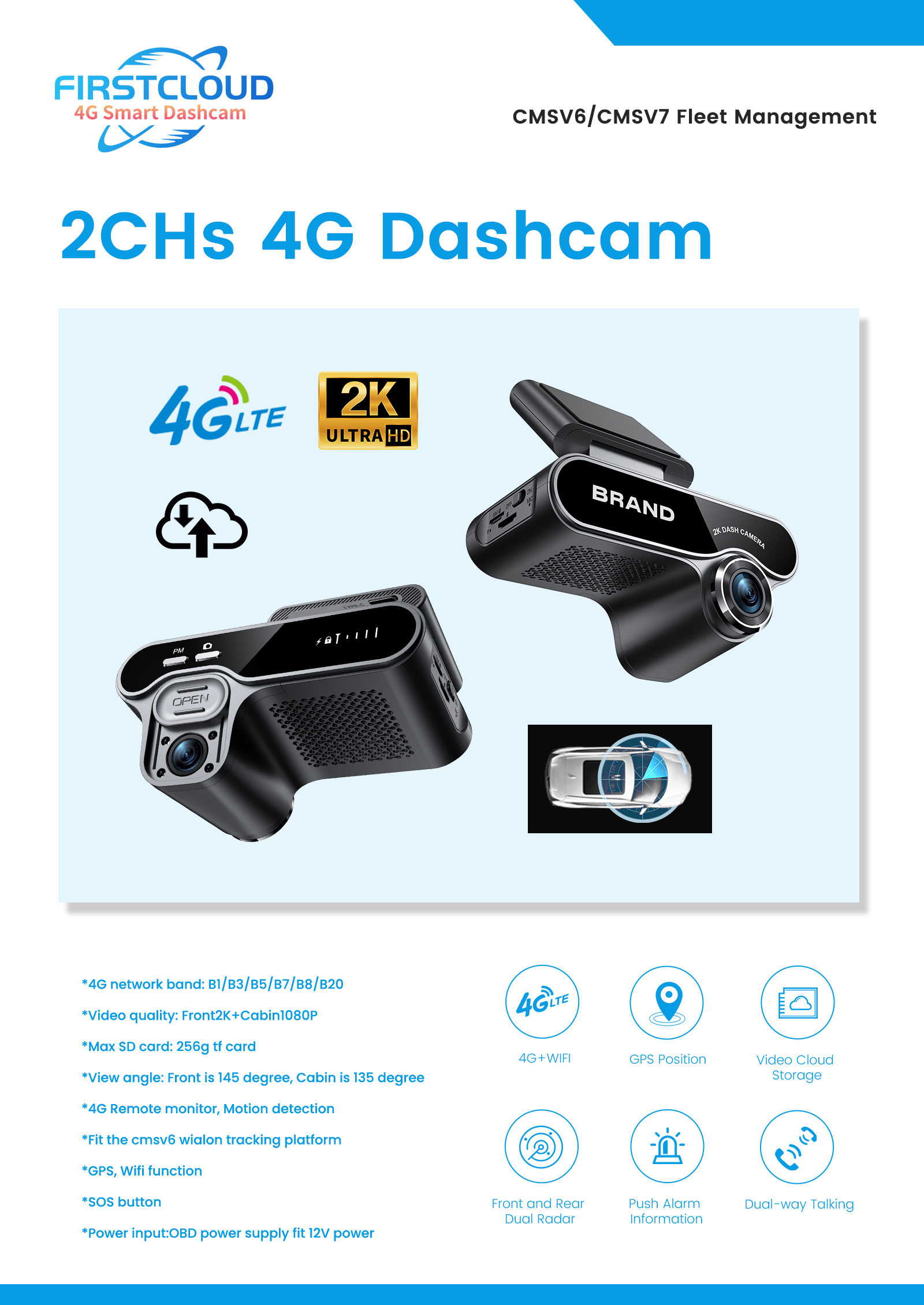 our products has been autorized by CE, RoHS, CCC, E-mark, FCCcertifications. We're always devoted to producing superior quality products, always has stock in warehouse, so can ship the goods out within 2-3 days. First-calss after sales service, also can providethe ODM/OEM services. Our 4G dash cam can support 2CH or 4CH record, all the model can fit the cmsv6 or wialon tracking platform. API can be provided if client need to integrate with their own platform for the vehicle tracking on website, PC. We sincerely would like to establish long-term partnership with our clients around the world. Any question, please feel free to contact us.