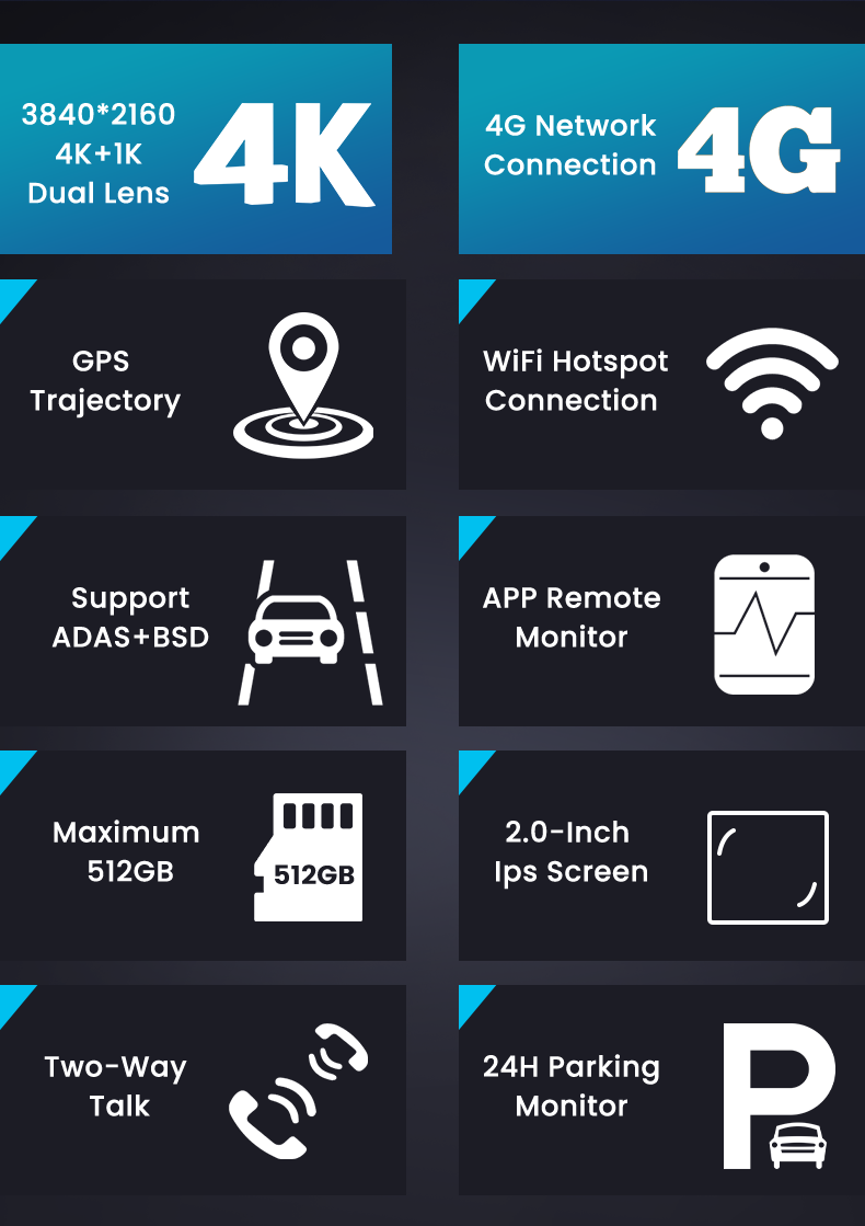 -front is 4k, rear is 1080p record