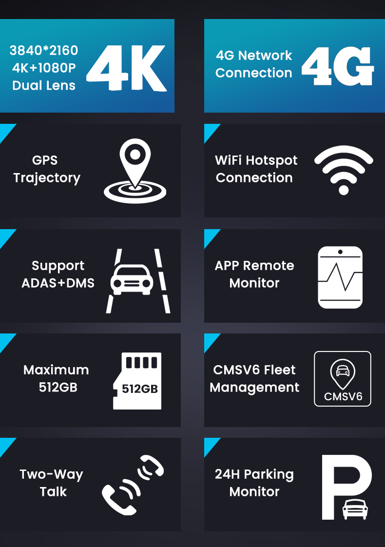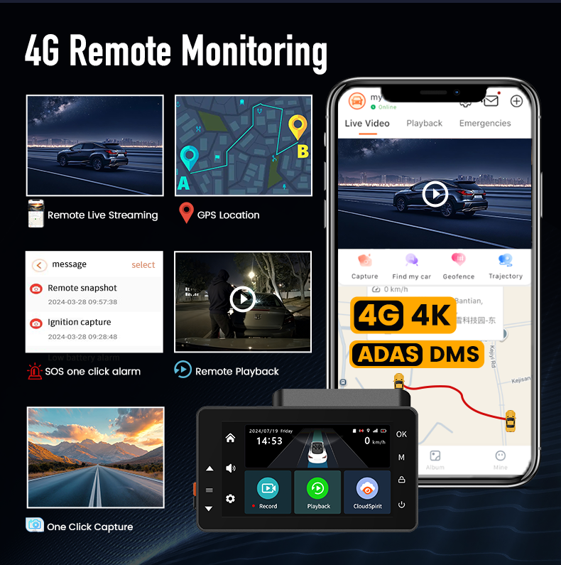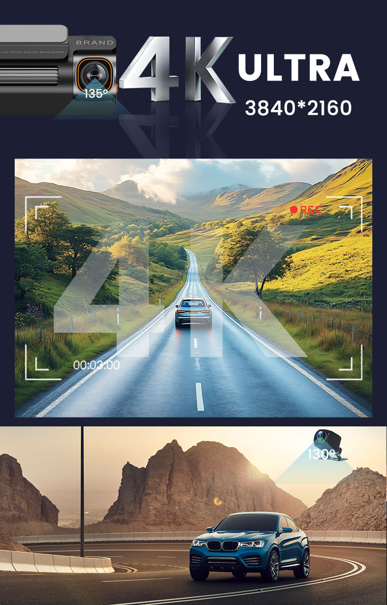 -video quality: front is 4k, rear and cabin cam is 1080p
