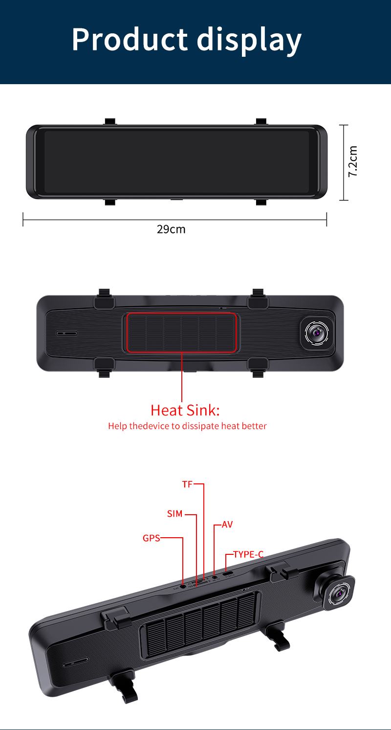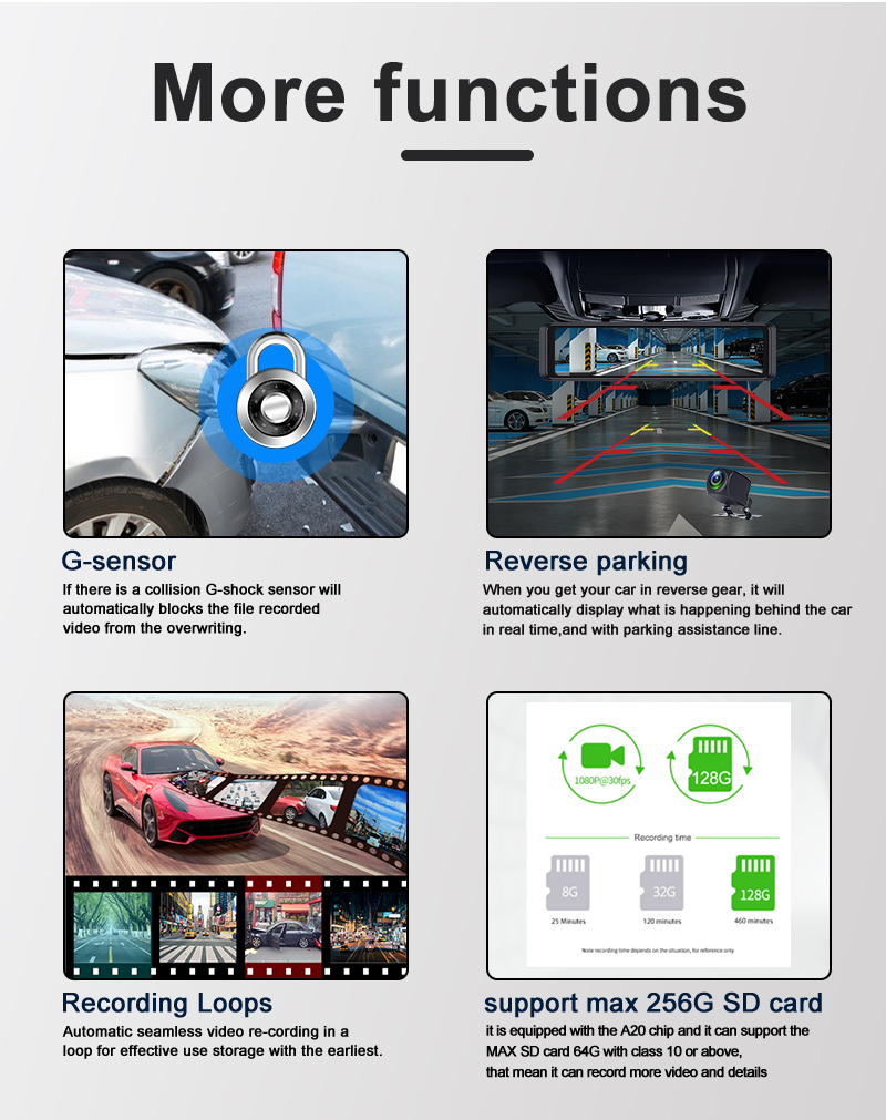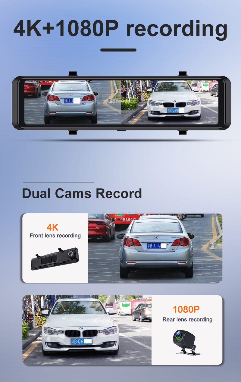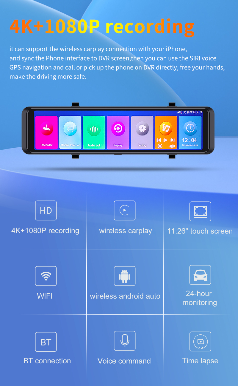 12inch dual lens 4K record wireless carplay mirror car dvr with wifi and parking monitor support max 128G card car black box